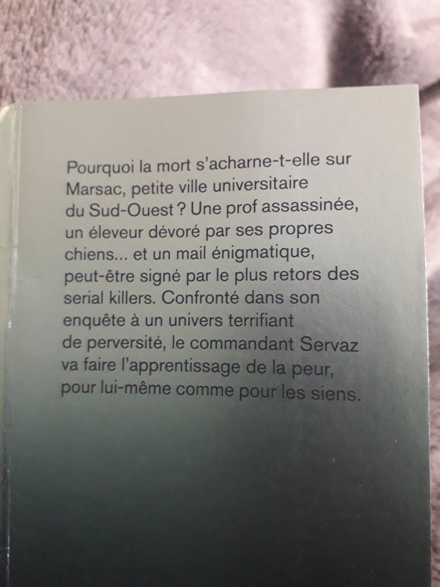 Le commandant Servaz, contactée par une vieille « amie », concernant un meurtre dont tout accuse son fils se saisit de l’affaire. Mais quelle n’est pas sa surprise de tomber sur la piste du serial killer qu’il recherche, sur le lieu du crime.